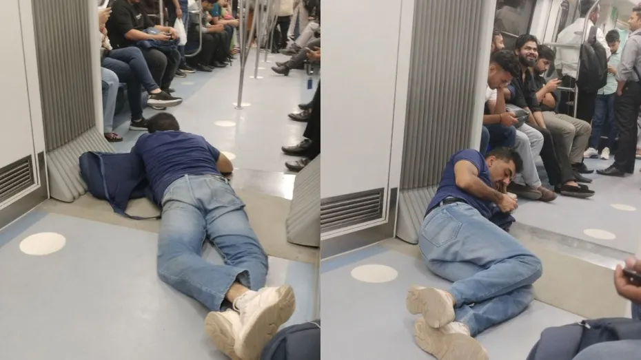 माइक्रो ब्लॉगिंग प्लेटफॉर्म एक्स जिसे पहले ट्विटर के नाम से जानते थे, उसपर एक पोस्ट वायरल हो रहा है जिसमें एक शख्स की कुछ तस्वीरें नजर आ रही हैं। आप सभी ने मेट्रो में सफर किया ही होगा। मेट्रो में लोगों को फर्श पर बैठने से मना किया जाता है मगर वायरल फोटो में एक शख्स मेट्रो के फर्श पर लेटा हुआ नजर आ रहा है। फोटो में नजर आ रहा है कि वह आदमी बड़े ही आराम से फर्श पर लेटा हुआ है जैसे कोई आदमी अपने घर में पलंग पर लेटता है। मेट्रो की फर्श पर लेटते हुए शख्स अपना फोन चला रहा है।