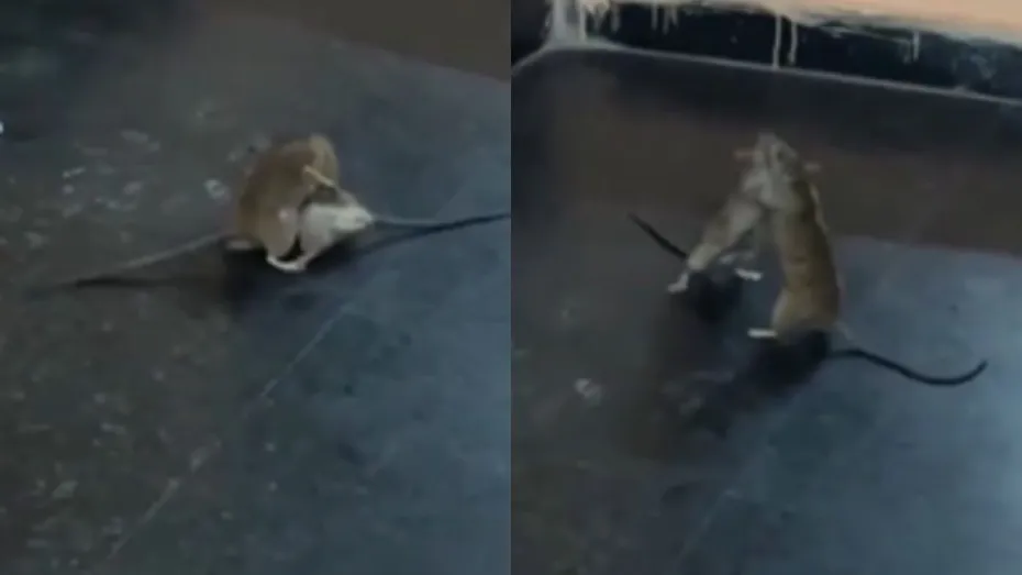 आपने लड़ाई के तो खूब सारे वीडियो देखे होंगे मगर अब तक सिर्फ इंसानों को लड़ते हुए देखा होगा। आज के वायरल वीडियो में दो चूहे लड़ते हुए नजर आ रहे हैं। अभी जो वीडियो वायरल हो रहा है उसमें दो चूहे आपस में लड़ते हुए नजर आ रहे हैं और कुछ सेकंड तक दोनों ऐसे लड़ते दिखे जैसे ये चूहों का WWE चल रहा हो। कुछ देर तक लड़ने के बाद वो दोनों अलग हो जाते हैं और अपने-अपने रास्ते भाग जाते हैं। शख्स ने यह देखते ही इसका वीडियो बना लिया जो अब सोशल मीडिया पर वायरल हो रहा है।