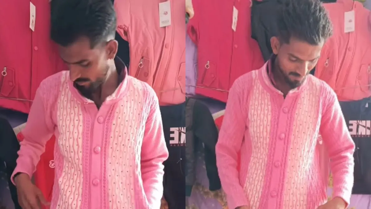 कई सारे लोगों की यह आदत होती है कि वो जब भी कपड़े खरीदने जाते हैं तो अपने दोस्तों को साथ में ले जाते हैं क्योंकि उनकी पसंद उससे मेल खाती है और एक ही उम्र के हैं तो फैशन का भी अंदाजा रहता है। ऐसा ही एक बंदे ने किया और दुकान पर स्वेटर या जैकेट लेने के लिए गया। अब हुआ यह कि दोस्त ने औरतों वाला स्वेटर पकड़ा दिया और तारीफ ऐसे कर दी जैसे वो स्वेटर उसी के लिए बना है। उसके भी हाव-भाव बता रहे हैं कि वो दोस्त की बातों में आ गया है। अब वीडियो सोशल मीडिया पर खूब वायरल हो रहा है।