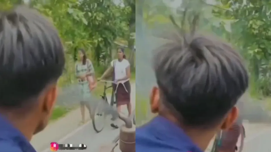 अभी जो वीडियो वायरल हो रहा है उसमें नजर आता है कि एक आदमी जनरेटर के साथ सड़क पर कहीं जा रहा है। सामने से जो लड़कियां पैदल चलते हुए आ रही हैं। उनमें से एक के पास साइकिल भी है जिसे वो साथ टहलाते हुए ला रही है। जब लड़कियां और वो लड़का दोनों पास में आ जाते हैं तो उन्हें परेशान करने के लिए लड़का जान बूझ कर जनरेटर को तेज कर देता है ताकि उसका धुआं उनके चेहरे तक पहुंच सके। मगर वो दोनों कुछ भी रिएक्ट किए बिना वहां से चुपचाप आगे चलते हुए ही नजर आती हैं।
