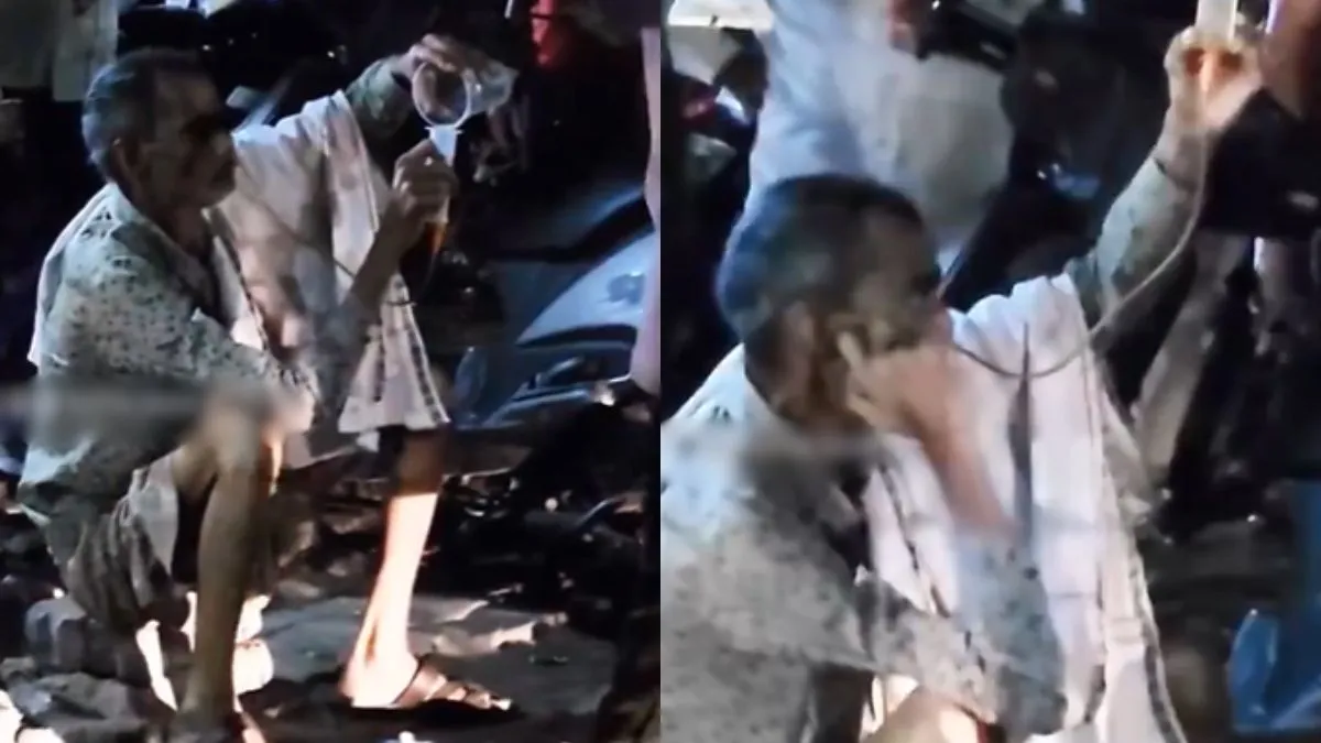 आपने अभी जो वीडियो देखा उसे एक्स प्लेटफॉर्म पर @hariom5sharma नाम के अकाउंट से पोस्ट किया गया है। वीडियो को पोस्ट करते हुए कैप्शन में लिखा है, 'चाचा आखिरी ख्वाहिश पूरी करते हुए।' वहीं वीडियो के अंत में लिखा आता है, 'प्राण जाए पर दारू न जाए।' खबर लिखे जाने तक वीडियो को 24 हजार से अधिक लोगों ने देख लिया है। वीडियो देखने के बाद एक यूजर ने कमेंट करते हुए लिखा- देसी लोग देसी ख्वाहिश। दूसरे यूजर ने लिखा- बड़े तेजस्वी लोग हैं। तीसरे यूजर ने लिखा- अलग दुनिया में है। चौथे यूजर ने लिखा- कैसे कैसे लोग हैं यार। एक अन्य यूजर ने लिखा- चचा को यही चाहिए।