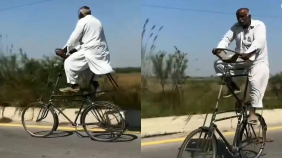 आपने सड़कों पर अलग-अलग तरह की कई साइकिलें देखी होंगी और आपने उन्हें कभी न कभी चलाया भी होगा। छोटी से लेकर बड़ी साइकिल तक आपने चलाई होगी। लेकिन क्या आपने कभी डबल डेकर जैसी साइकिल चलाई है? एक चचा ने नॉर्मल साइकिल के ऊपर एक और साइकिल की डंडे लगाकर उसे डबल ऊंचाई दे दी है और सबसे ऊपर बैठकर उसे चला रहा है। आप जब वायरल वीडियो को देखेंगे तो आपके मन में सवाल उठेगा कि यह इस पर चढ़े कैसे और अब उतरेंगे कैसे।