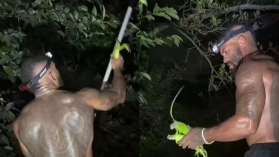 अभी जो वीडियो वायरल हो रहा है उसमें नजर आता है कि एक आदमी रात में एक पेड़ के नीचे पहुंचा हुआ है। उसने सिर पर लाइट लगाई हुई है और हाथ में एक स्टिक है। अब वो इतनी रात में वहां पर गिरगिट को पकड़ने के लिए पहुंचा है और बहुत ही आराम से एक के बाद एक करते हुए गिरगिट को पकड़ रहा है। वो गिरगिट ऐसे पकड़ा रहा है जैसे पेड़ से कोई फल गिर रहा है या फिर कोई बॉल फेंक रहा है और वो उसे कैच कर रहा हो। उसे देखकर यह लगता है कि यह उसका रोज का काम है। अब उसके इसी काम की वजह से वीडियो वायरल हो रहा है।