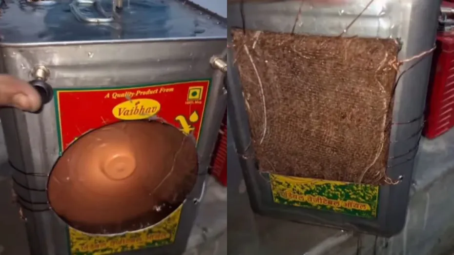अभी गर्मी का मौसम चल रहा हो तो लोग AC लगवा रहे हैं। जो लोग AC नहीं लगवा सकते, उनके घर में कूलर तो मिल ही जाएगा। अब जो लोग कूलर नहीं लगवा सकते हैं, वो ऐसा जुगाड़ करते हैं। आप सभी ने कनस्तर तो देखा ही होगा जिसमें सरसों का तेल आता है। एक आदमी ने उसे एक जगह से काटकर उसमें पंखा फिट किया है। इतना ही नहीं उसने उसमें दूसरे तरफ कूलर वाले घास की जगह पर बोरा लगाया हुआ है और तारों का अच्छे से कनेक्शन देकर उसे जुगाड़ वाला कूलर बना दिया है। वीडियो अलग-अलग अकाउंट से खूब पोस्ट किया जा रहा है।