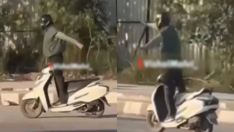 अभी जो वीडियो वायरल हो रहा है उसमें एक चचा स्कूटी पर स्टंट करते हुए नजर आ रहे हैं। वीडियो में नजर आता है कि सड़क पर कई गाड़ियां चल रही हैं और उन्हीं के बीच एक चचा भी दिखते हैं जो स्कूटी को चला रहे हैं। मगर वो स्कूटी की सीट पर बैठकर, हाथों से हैंडल को बैलेंस करते हुए स्कूटी नहीं चला रहे हैं बल्कि वो स्कूटी की फूटरेस्ट पर खड़े हो गए हैं और जांघ को हैंडल से लगा दिया है। इसके बाद वो अपने हाथों को इधर-उधर मूव करते हुए स्कूटी को वैसे ही चला रहे हैं और उनके इस स्टंट का वीडियो वायरल हो गया।
