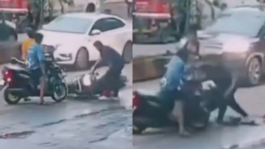 अभी जो वीडियो वायरल हो रहा है उसमें नजर आता है कि एक बंदा स्कूटी पर कहीं जा रहा है। अचानक सामने से एक दूसरा शख्स भी स्कूटी पर आता दिखता है और उसे देखते ही वो आदमी घबराया जाता है और घबराहट में वो बैलेंस खो देता है जिसके कारण स्कूटी स्लिप हो जाती है। वो इसके बाद स्कूटी को उठाने की कोशिश करता है मगर वो रेस दे देता है जिसके कारण स्कूटी आगे बढ़ जाती है और दूसरे बंदे से टकरा जाती है। वो इसके बाद गिरने से तो बच जाता है मगर उसकी स्कूटी की रेस बढ़ जाती है और वो दूसरी तरफ पहुंच जाता है।