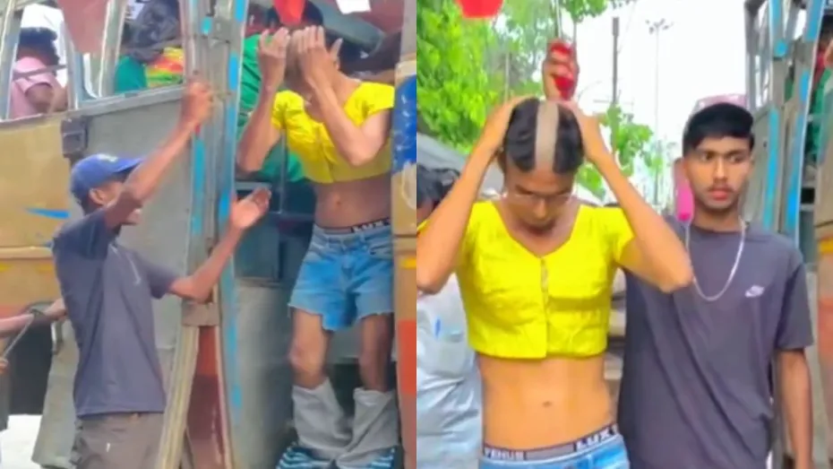 अभी वायरल हो रहे वीडियो में नजर आता है कि एक शख्स फटा हुआ छाता लेकर किसी के आने का इंतजार कर रहा है। तभी बस से एक शख्स उतरता है जिसका पहनावा काफी अजीब है और साथ ही साथ हेयर स्टाइल भी अजीब सा है। शख्स ने ऊपर एक ब्लाऊज पहना हुआ है। इसके अलावा उसने एक कटा हुआ पैंट पहना है। इसके अलावा उसने एक और पैंट पहना हुआ है जो घुटने के नीचे तक ही है। उसने अपने बालों को भी बड़ा अजीब किया हुआ है। उसने अपने बालों को बीच में से उड़ा दिया है। इसके बाद वह सड़क पर चलते हुए नजर आता है।