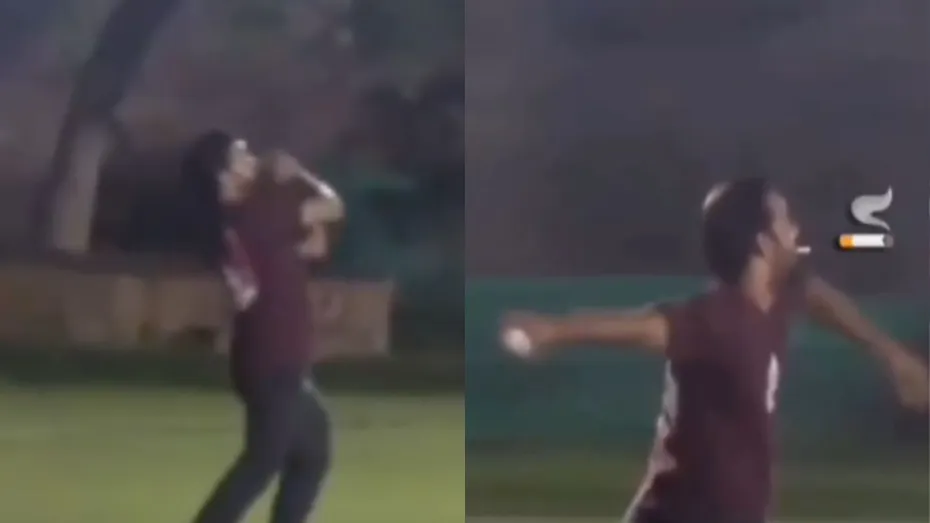 सोशल मीडिया पर जो वीडियो वायरल हो रहा है उसमें नजर आ रहा है कि दो टीमों के बीच क्रिकेट मैच चल रहा है। बॉलर जैसे ही बॉल डालता है, बैट्समैन एक जोर का शॉट मारता है। मगर उस शॉट में उतना दम नहीं था कि वो बाउंड्री पार जा सके और बॉल फील्डर के पास पहुंच जाती है। फील्डर भी बड़ी फुर्ती के साथ कैच ले लेता है। मगर वीडियो में असली ट्विस्ट उसके बाद आता है। बॉल पकड़ने के बाद वो जमीन से अपनी सिगरेट को उठाता है जिसे उसने कैच पकड़ने से पहले फेंक दिया है। इसके बाद सिगरेट पीते हुए विकेट का आनंद उठाता है।