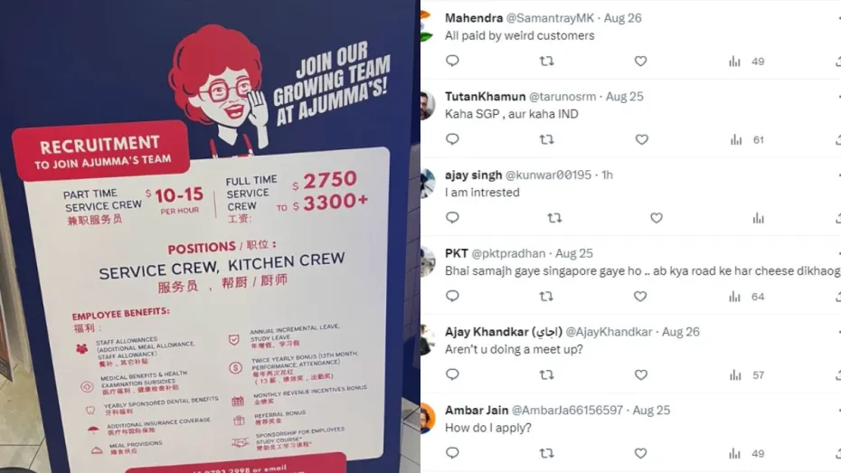 इस खबर को लिखे जाने तक पोस्ट को करीब 77 हजार लोगों ने देखा है। पोस्ट को काफी शेयर किया जा रहा है। इस नौकरी की सैलेरी देखने के बाद लोगों में भरपूर कमेंट किए हैं। एक यूजर ने लिखा कि इतने फायदे तो यहां MNC कंपनियों में भी नहीं मिलते। तो वहीं एक दूसरे यूजर ने इससे अलग अपनी बात रखी। उस यूजर ने कहा कि सिंगापुर की लाइफ स्टाइल के मुताबिक ये सैलेरी ज्यादा नहीं है।