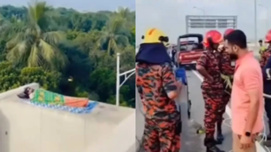 सोशल मीडिया पर एक वीडियो वायरल हो रहा जो आपको हैरान कर देगा। वीडियो में नजर आ रहा है कि एक आदमी चादर डालकर सो रहा है। मगर वो अपने कमरे में नहीं सो रहा है बल्कि एक फ्लाईओवर के पिलर पर बचे हुए स्पेस पर सोता हुआ नजर आ रहा है। उसे देखने के बाद उसको सुरक्षित बचाने के लिए एक टीम वहां पहुंची हुई है और बचाने का प्रयास भी कर रही है। मगर वह शख्स इतने आराम से सो रहा है जैसे डर से उसका कोई लेना देना ही नहीं है। वीडियो कब और कहां का है, इसकी जानकारी तो नहीं मिल पाई मगर अभी सोशल मीडिया पर वीडियो वायरल हो रहा है।