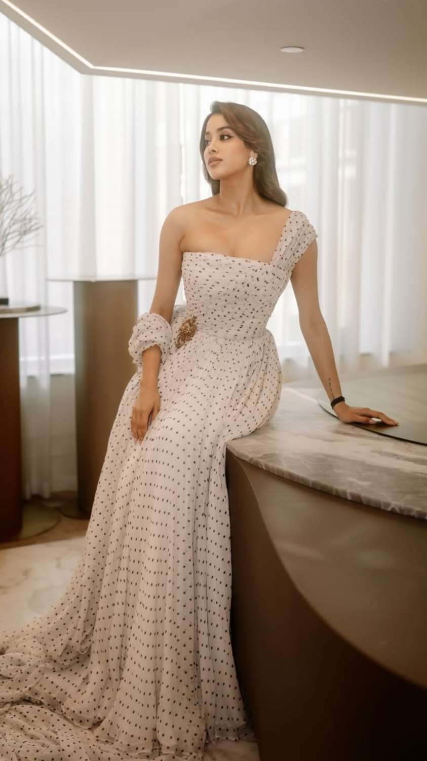 Image Source : Instagram/@janhvikapoorव्हाइट कलर की पोल्का डॉट गाउन में एक्ट्रेस बला की खूबसूरत लग रही हैं। हर किसी को जाह्नवी कपूर का ये नया लुक बहुत पसंद आ रहा है।