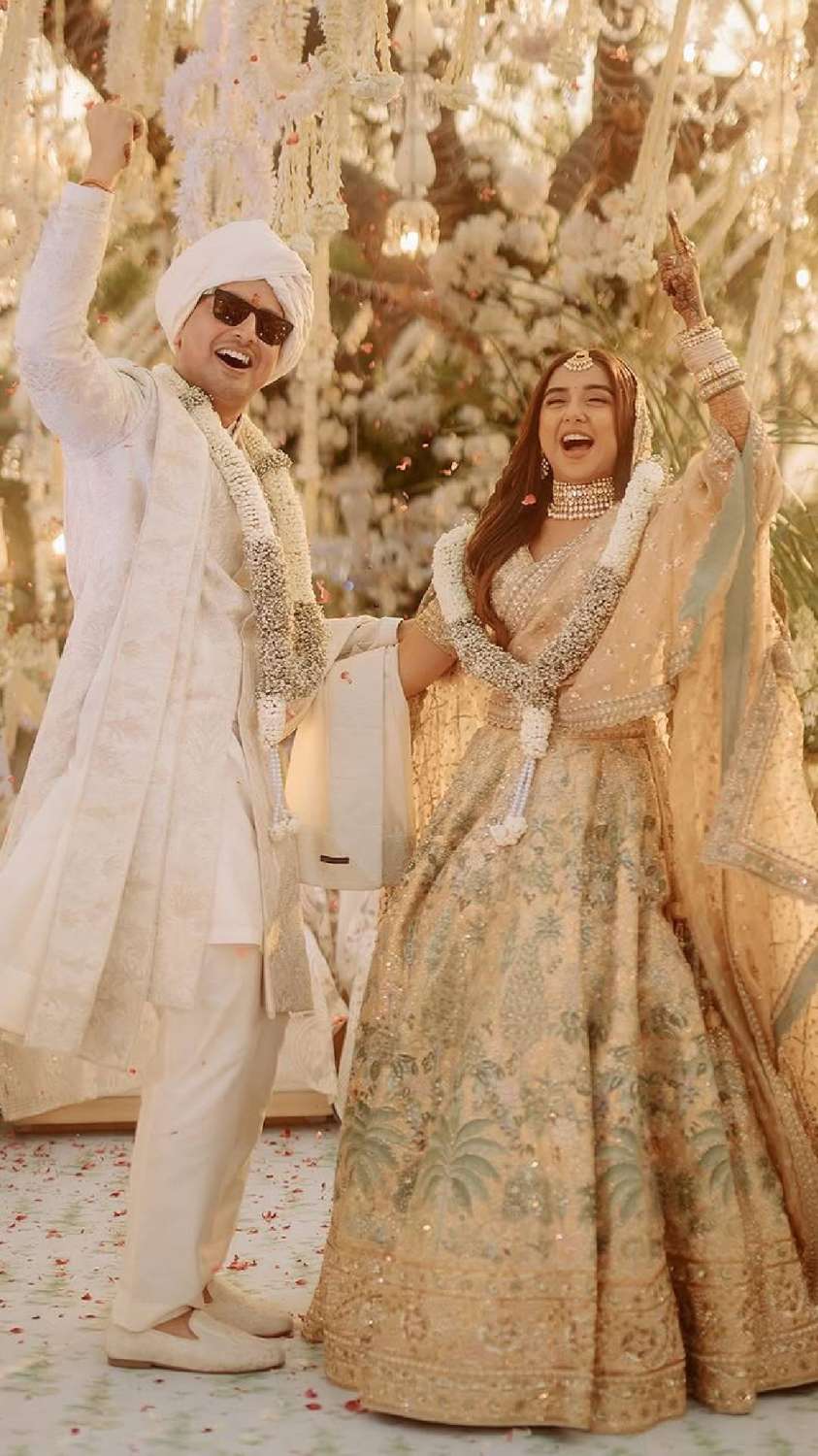 Image Source : Instagramवहीं उनके दूल्हे राजा ने क्रीम कलर की शेरवानी कैरी की। इसके साथ ही वो आंखों में गॉगल्स लगाए नजर आए।