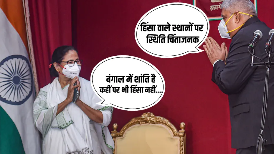 एक तरफ जहां राज्यपाल जगदी धनखड़ का कहना है कि चुनाव के बाद जिन स्थानों पर हिंसा हुई है, वहां स्थिति बेहद चिंताजनक है तो वहीं लगातार तीसरी बार सूबे की कमान हाथ में ले चुकी ममता बनर्जी का कहना है कि पश्चिम बंगाल में शांति है, कहीं पर भी हिंसा नहीं हो रही।