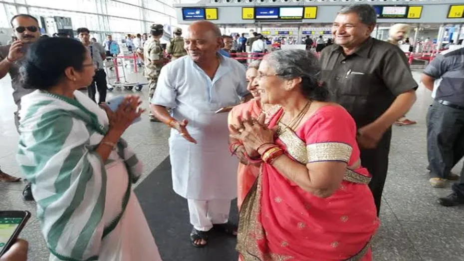 कोलकाता। पश्चिम बंगाल की मुख्यमंत्री ममता बनर्जी मंगलवार से दिल्ली में मौजूद हैं। वे बुधवार को प्रधानमंत्री से मुलाकात करेंगी। लेकिन जब वे कोलकाता से दिल्ली आ रही थीं, तभी उनकी मुलाकात उस शख्स से हुई जिससे मिलने की उन्हें उम्मीद नहीं थी। दरअसल उनके सामने थीं प्रधानमंत्री नरेंद्र मोदी की पत्नी जशोदाबेन। विमान में सवार होने से पहले प्रधानमंत्री नरेंद्र मोदी की पत्नी को देख ममता बनर्जी उनसे मिलने के लिये दौड़ पड़ीं। इस दौरान दोनों के बीच सुखद बातचीत हुई।