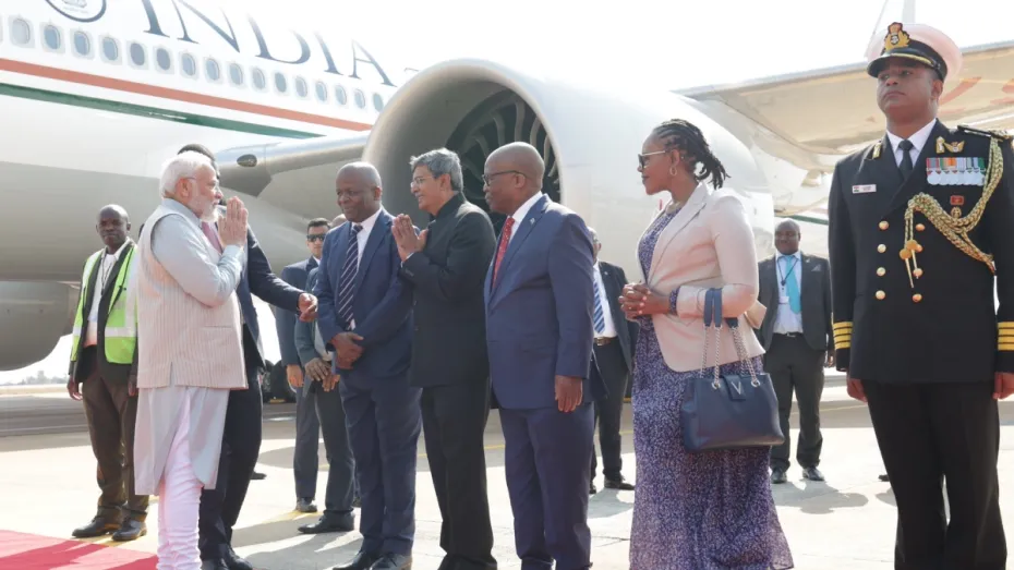 जोहान्सबर्ग पहुंचने पर भारत के पीएम नरेंद्र मोदी का पारंपरिक तरीके से स्वागत किया गया। विदेश मंत्रालय के प्रवक्ता अरिंदम बागची ने बताया कि दक्षिण अफ्रीका के उपराष्ट्रपति ने पीएम मोदी का स्वागत किया। पीएम को औपचारिक गार्ड ऑफ ऑनर भी दिया जाएगा।