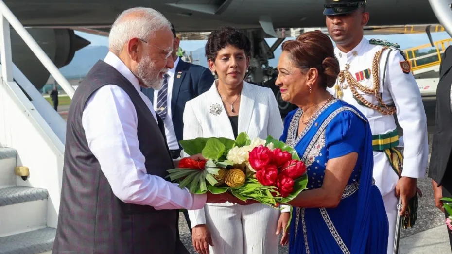 पीएम मोदी ने सोशल मीडिया प्लेटफॉर्म X पर लिखा, ‘पोर्ट ऑफ स्पेन, त्रिनिदाद और टोबैगो पहुंच गया हूं। प्रधानमंत्री कमला परसाद-बिसेसर, कैबिनेट के सम्मानित सदस्यों और सांसदों का हवाई अड्डे पर स्वागत के लिए शुक्रिया। यह दौरा हमारे देशों के बीच रिश्तों को और मजबूत करेगा। कुछ घंटों बाद एक सामुदायिक कार्यक्रम को संबोधित करने का इंतजार है।’ होटल पहुंचने पर भारतीय समुदाय ने 'भारत माता की जय' और 'मोदी-मोदी' के नारों के साथ उनका जोरदार स्वागत किया।‘आपका दौरा सिर्फ औपचारिकता नहीं’