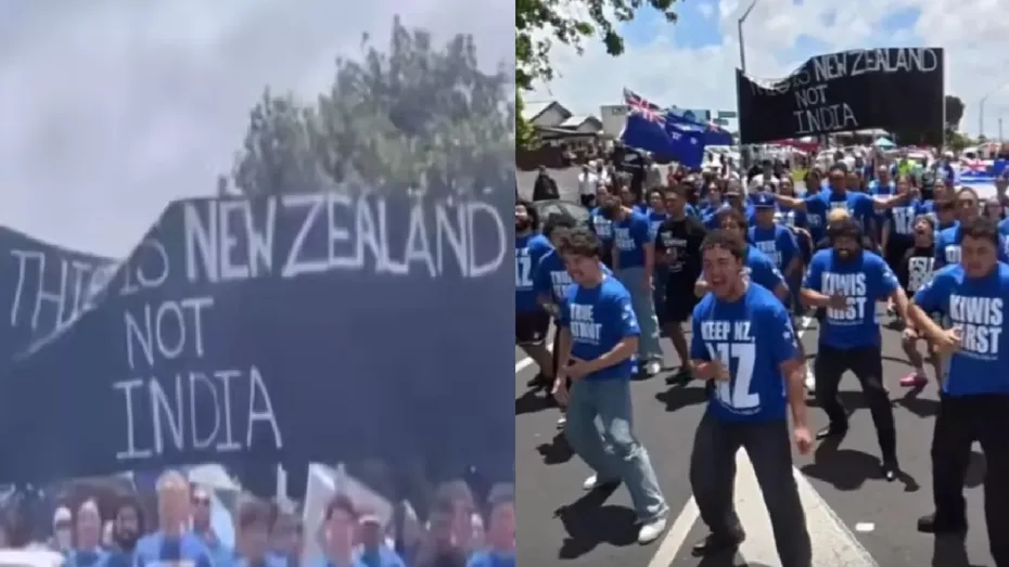 New Zealand Sikh Procession: न्यूजीलैंड के साउथ ऑकलैंड में दक्षिणपंथी समूह ने सिख धार्मिक जुलूस (नगर कीर्तन) में बाधा डाली। इसके बाद विवाद खड़ा हो गया है। बाधा डालने के वीडियो सोशल मीडिया पर वायरल हो गए हैं। वायरल वीडियो में नीली टी-शर्ट पहने लोग ग्रेट साउथ रोड के किनारे खड़े होकर जुलूस के सामने पारंपरिक माओरी 'हाका' करते हुए दिखाई दे रहे हैं, जिससे सिख धार्मिक जुलूस आगे बढ़ने से रुक गया।