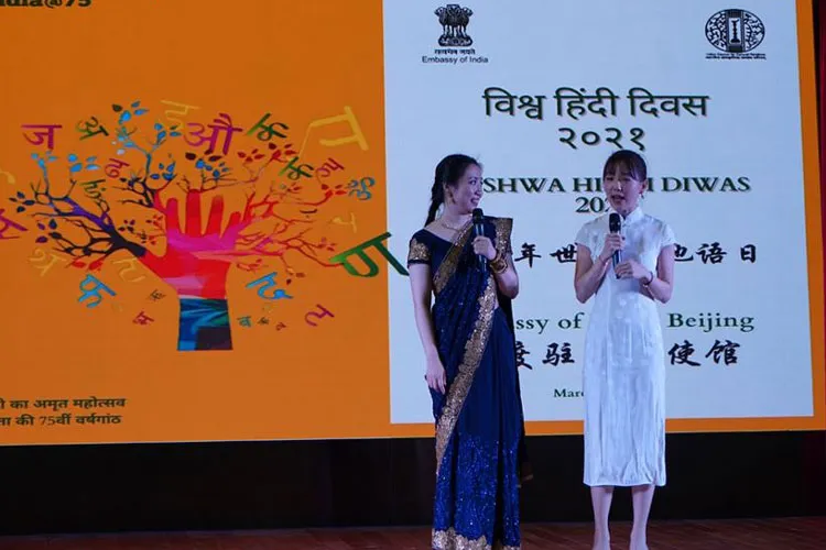 बीजिंग: मैं मीरा हूं,मैं पतली हूं - मैं अंजली हूं, मैं मोटी हूं - मैंने चीनी परंपरागत पोशाक छीफाओ पहना हुआ है -और मैंने भारतीय परंपरागत पोशाक साड़ी पहनी हुई है - हम दोनों हिन्दी बोलने वाली चीनी लड़की हैं - -हम दोनों भारत से प्यार करते हैं... 20 मार्च 2021 को, पेइचिंग स्थित भारतीय दूतावास में विश्व हिन्दी दिवस के उपलक्ष्य में चाइना मीडियाग्रुप के अधीनस्थ चाइना रेडियो इन्टरनेशनल (सीआरआई) के हिन्दी विभाग से आई दोनों होस्ट दर्शकों के सामने हिन्दी में टॉकशो किया। उन्होंने गाना गाया, नृत्य किया, जोक्स सुनाये, भारत में अपना अनुभव साझा किया और चीनी व भारतीय लोगों के बीच गलतफहमियों को उजागर किया। उनके प्रदर्शन के दौरान दूतावास के स्वामी विवेकानंद सांस्कृतिक केंद्र के सभागृह में उपस्थित सौ से अधिक चीनी और भारतीय दर्शकों ने हंसते हुए खूब तालियां बजायीं। इन दोनों चीनी लड़कियों की धाराप्रवाह हिन्दी सुनकर भारतीय मित्र भी दंग रह गये, और वहां मौजूद हिन्दी सीखने वाले चीनी विद्यार्थियों के विचार में उनसे सीखने योग्य है।