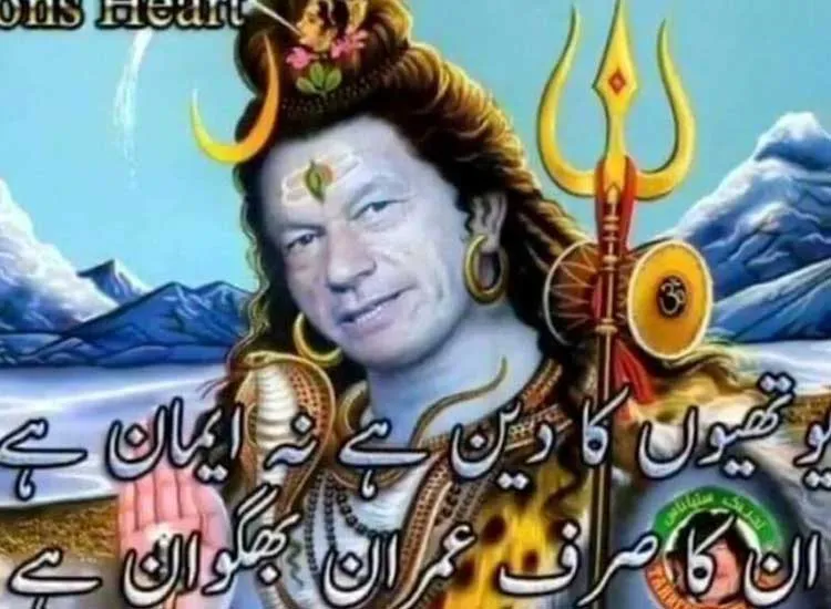 हाल ही में पाकिस्तान में पूर्व क्रिकेटर और पीटीआई के अध्यक्ष इमरान खान की भगवान शिव से तुलना की गई। सोशल मीडिया पर इमरान खान की तस्वीर भगवान शिव के रूप में वायरल हो रही है। इस तस्वीर के सोशल मीडिया पर खूब बवाल मच रहा है। इमरान खान की इस तस्वीर का पाकिस्तान में रहने वाले हिंदू समेत पाकिस्तानी संसद में भी विरोध किया गया। बीबीसी के अनुसार पाकिस्तानी संसद ने इमरान खान को हिंदू भगवान के रूप में दिखाए जाने के मामले की जांच को संघीय जांच एजेंसी के हवाले कर दी है। (सीरिया मामले में सभी विकल्पों पर विचार कर रहे हैं ट्रंप )