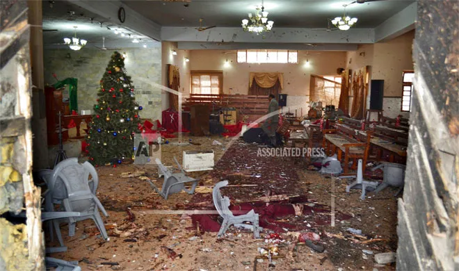 कराची/इस्लामाबाद: पाकिस्तान के अशांत प्रांत बलूचिस्तान की राजधानी क्वेटा में एक चर्च में रविवार को हुए आत्मघाती बम विस्फोट में कम से कम 8 लोगों की मौत हो गई और लगभग 44 अन्य लोग घायल हो गए। पुलिस के मुताबिक,, प्रांतीय राजधानी क्वेटा में जारघोन मार्ग स्थित एक चर्च में करीब 4 आतंकवादियों ने उस वक्त हमला किया जब वहां रविवार की प्रार्थना जारी थी। बलूचिस्तान के गृह मंत्री मीर सरफराज बुग्ती ने कहा कि हमले में कम से कम 2 हमलावर शामिल थे। बुग्ती ने बताया कि इन 2 हमलावरों में से एक ही खुद को उड़ा सका, जबकि दूसरे को विस्फोट करने से पहले ही चर्च के सिक्यॉरिटी गार्ड ने गोली मार दी।