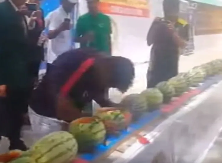 इस्लामाबाद: पाकिस्तान के एक नागरिक ने हाल ही में रेकॉर्ड बनाया है। कराची में रहने वाले 32 वर्षीय राशिद नसीम ने एक मिनट में 51 तरबूजों के अपने सिर से तोड़ने का रेकॉर्ड बनाया है। आपको बता दें कि इससे पहले भी सिर से तरबूज तोड़ने का रेकॉर्ड बनाया जा चुका है उस समय यह रेकॉर्ड जर्मनी के ताफजी अहमद ने बनाया था। उन्होंने एक मिनट में 43 तरबूज तोड़ने का रेकॉर्ड बनाया था। (रिपोर्ट में हुआ दावा, ब्रिटेन में भारतीयों के 'गुलाम' बनने का खतरा! )