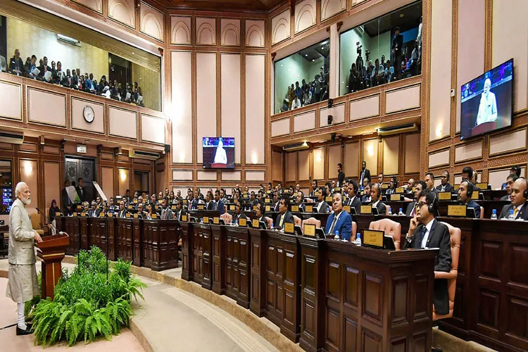उन्होंने कहा कि मालदीव में आजादी, लोकतंत्र, समृद्धि और शांति के लिए भारत उसके साथ खड़ा है। मोदी ने संसद में कहा, ‘‘आज मालदीव में और मजलिस में मैं आपके बीच आकर बहुत खुश हूं। मोहम्मद नशीद जी के स्पीकर बनने के बाद मजलिस ने पहली ही बैठक में मुझे आमंत्रित करने का फैसला लिया।’’ उन्होंने कहा, ‘‘मैं बहुत खुश हूं कि हमने आज दोनों देशों के बीच फेरी सेवा पर करार किया है।’’
