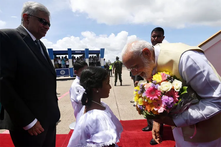दोबारा प्रधानमंत्री चुने जाने के बाद अपने दूसरे विदेशी दौरे पर प्रधानमंत्री नरेंद्र मोदी आज श्रीलंका पहुंचे हैैं। मोदी ने इस यात्रा के लिए पड़ोसी देशों मालदीव और श्रीलंका को चुना। यह यात्रा ‘पड़ोसी प्रथम’ की उनकी नीति को दर्शाती है। श्रीलंका के प्रधानमंत्री रानिल विक्रमसिंघे ने भंडरनायके अंतरराष्ट्रीय हवाईअड्डे पर मोदी का स्वागत किया। प्रधानमंत्री मोदी का यह दौरा काफी संक्षिप्त होगा। वे दोपहर बाद वापस भारत लौटेंगे, जहां वे तिरुपति बालाजी मंदिर के दर्शन करेंगे, साथ ही 5000 बीजेपी कार्यकर्ताओं को भी संबोधित करेंगे।