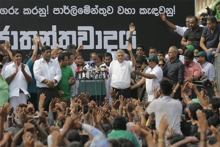कोलंबो: श्रीलंका में बर्खास्त प्रधानमंत्री रानिल विक्रमसिंघे की पार्टी ने राष्ट्रपति मैत्रीपाला सिरिसेना पर तख्तापलट का आरोप लगाते हुए इसके खिलाफ मंगलवार को विरोध प्रदर्शन आयोजित किया और एक बड़ी रैली में सैकड़ों प्रदर्शनकारी जमा हुए। इस बीच दोनों खेमे राजनीतिक संकट को समाप्त करने के लिए संसद में संख्याबल जुटाने का प्रयास कर रहे हैं।