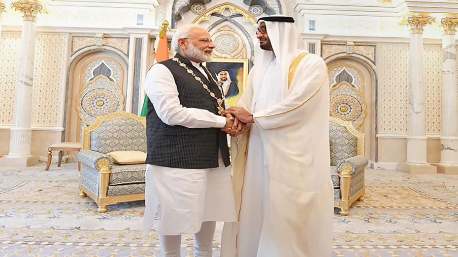 यूएई ने अप्रैल में मोदी को देश के सर्वोच्च सम्मान से नवाजे जाने की घोषणा की थी। अबुधाबी के वलीअहद शहजादा मोहम्मद बिन जायेद अल नहयान ने अप्रैल में एक ट्वीट कर बताया, ‘‘भारत के साथ हमारे ऐतिहासिक और व्यापक सामरिक संबंध रहे हैं, जिसमें मेरे अभिन्न मित्र प्रधानमंत्री नरेंद्र मोदी ने अहम भूमिका निभायी है। उन्होंने इन संबंधों में और प्रगाढ़ता लाने का काम किया।’’