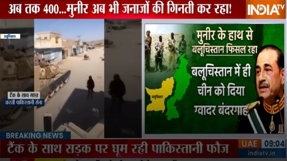 क्वेटा से लेकर नोशकी तक बलूचिस्तान के दर्जनभर से ज्यादा जिलों में इस समय बलूचिस्तान लिबरेशन आर्मी (BLA) के लड़ाके पाकिस्तानी फौज पर हावी पड़ रहे हैं। हालात ऐसे हैं कि BLA विद्रोहियों का मुकाबला करने के लिए पाकिस्तानी फौज अब टैंक के साथ सड़क पर उतर आई है। टैंकों का साथ भी पाकिस्तानी फौजी BLA का मुकाबला नहीं कर पा रहे हैं।