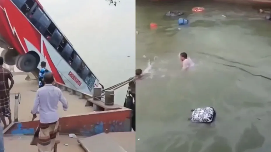 राजबाड़ी: बांग्लादेश के राजबाड़ी जिले में पद्मा नदी में एक यात्री बस के गिर जाने से 23 लोगों की मौत हो गई है। रिपोर्ट्स के मुताबिक, इस घटना में कई लोग घायल हुए हैं और कुछ अभी भी लापता बताए जा रहे हैं। राजबाड़ी से ढाका जा रही इस बस में करीब 40 से 50 यात्री सवार थे। यह दुर्घटना बुधवार शाम करीब 5 बजे दौलतदिया फेरी टर्मिनल नंबर 3 के सामने हुई। बस फेरी पर चढ़ने की कोशिश कर रही थी कि तभी वह नियंत्रण खोकर पानी में गिर गई। चश्मदीदों के मुताबिक, बस में कई स्टॉप्स से यात्री सवार हुए थे और वह खचाखच भरी हुई थी।