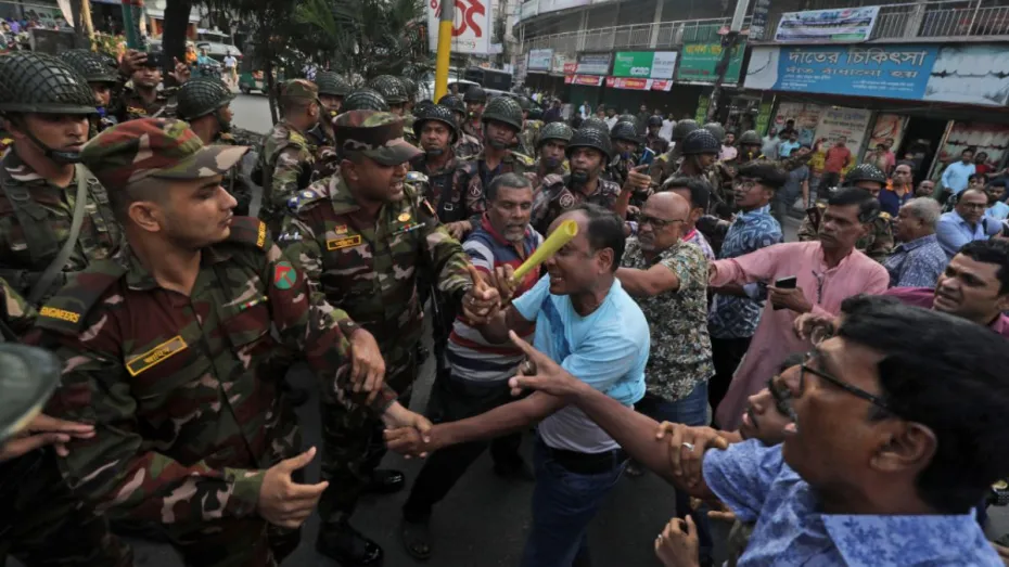 हजारी गली में मुख्य रूप से हिंदू समुदाय के लोग रहते हैं जो आभूषण की दुकानों और थोक दवा की दुकानों के मालिक हैं। प्रत्यक्षदर्शियों ने बताया कि इस्कॉन पर की गई इस टिप्पणी को लेकर रातभर संक्षिप्त झड़प हुई। इस दौरान मौके पर पहुंची सेना, बॉर्डर गार्ड बांग्लादेश (बीजीबी) के अर्धसैनिक बलों और पुलिसकर्मियों द्वारा लाठीचार्ज करने से कई लोग घायल हो गए। इस दौरान हजारी गली इलाके में दुकानें और व्यापारिक प्रतिष्ठान बंद रहे। यहां सेना के जवान पुलिस के साथ जीप में गश्त कर रहे हैं। लेफ्टिनेंट कर्नल फिरदौस अहमद ने एक संवाददाता सम्मेलन में बुधवार को बताया कि अली की दुकान के सामने भीड़ एकत्र हो गई, जिसके बाद संयुक्त बल घटनास्थल पर पहुंचे और उन्होंने अली और उसके भाई को हिरासत में ले लिया। उन्होंने कहा, ‘‘गुस्साई भीड़ ने आभूषण निर्माण में इस्तेमाल होने वाले एसिड और आस-पास की इमारतों से कांच की टूटी बोतलें फेंकी, जिससे सेना के पांच जवान और सात पुलिसकर्मी घायल हो गए।’’