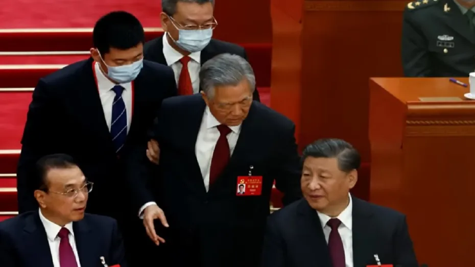 China News: चीन में एक बड़ा सियासी ड्रामा देखने को मिला है, जिसका वीडियो सोशल मीडिया पर तेजी से वायरल हो रहा है। दरअसल यहां कम्युनिस्ट पार्टी की 20वीं कांग्रेस में शी जिनपिंग की तीसरी बार ताजपोशी के बीच ये वाकया हुआ है। यहां से चीन के पूर्व राष्ट्रपति हू जिन्ताओ को पार्टी कांग्रेस के बीच से 'जबरन' बाहर किया गया है। वीडियो में साफ देखा जा सकता है कि सुरक्षाकर्मी हू जिन्ताओ को जबरन हाथ पकड़कर बाहर निकालते हैं।