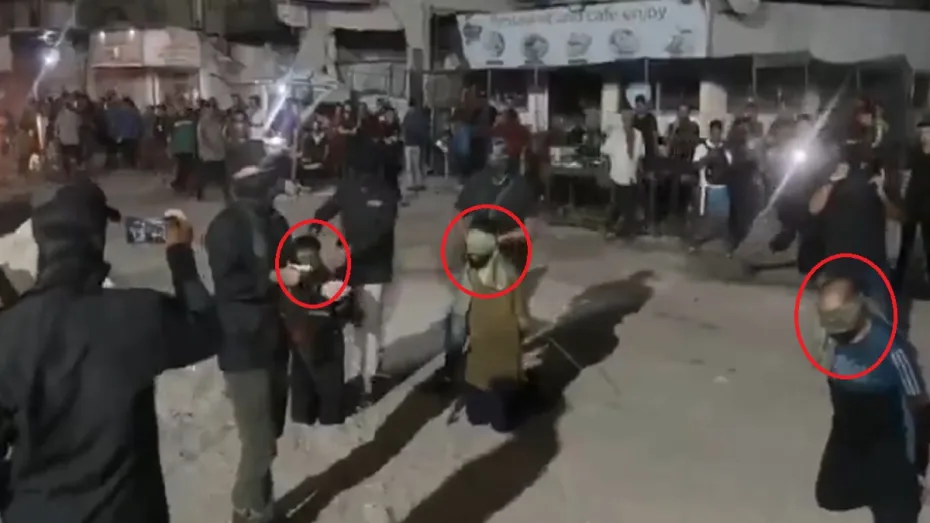 हमास के आतंकियों की इस करतूत का वीडियो भी सामने आया है। वीडियों में देखा जा सकता है कि 3 लोगों की आंखों पर पट्टी बंधी हुई है और वो जमीन पर घुटनों के बल बैठे दिखाई दे रहे हैं। इस दौरान हमास के आतंकी हथियारों के साथ दिख रहे हैं। इस दौरान लोगो की भीड़ में से कुछ लोग वीडियो बना रहे है तो कुछ लोग नारे लगा रहे हैं।