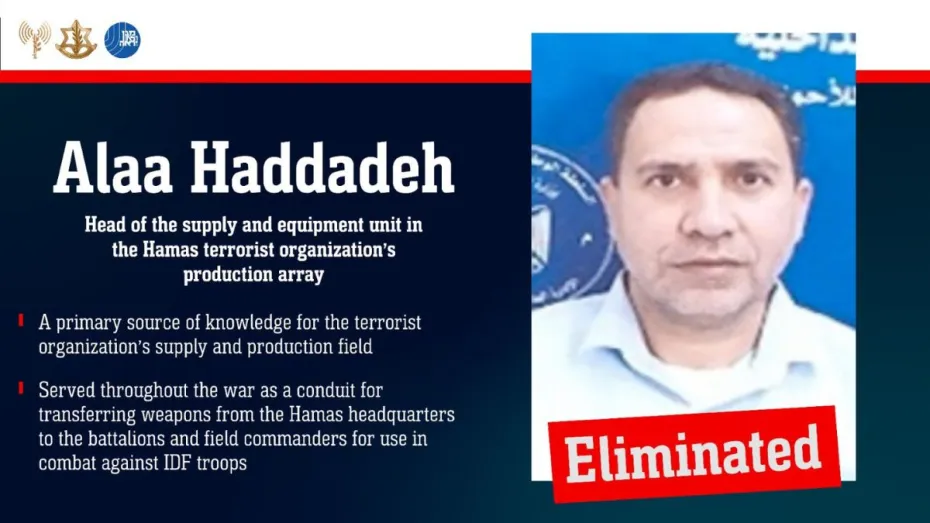 इजराजयली सेना के अनुसार हवाई हमले में ढेर हुआ आतंकी हद्दादेह हमास के हथियार उत्पादन और आपूर्ति तंत्र का केंद्रीय मस्तिष्क था। वह मुख्यालय से ब्रिगेड और फील्ड कमांडरों तक रॉकेट, मोर्टार, एंटी-टैंक मिसाइलें और विस्फोटक सामग्री पहुंचाने का मुख्य जिम्मेदार व्यक्ति था। उसकी मौत से हमास की हथियार आपूर्ति श्रृंखला को गहरा झटका लगा है। IDF ने कहा कि शुक्रवार देर रात हमास द्वारा युद्धविराम का उल्लंघन करने के बाद तुरंत कार्रवाई की गई। हमास के लड़ाकों ने दक्षिणी इजरायल की ओर रॉकेट दागे थे, जिसके जवाब में इजरायली वायुसेना ने गाजा में कई ठिकानों पर सटीक हमले किए।