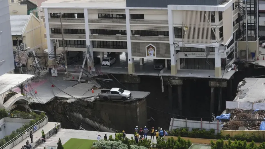 बैंकॉक: थाईलैंड की राजधानी बैंकॉक में बुधवार को एक सड़क अचानक धंस गई, जिससे वहां एक बहुत बड़ा गड्ढा बन गया। इस हादसे ने ट्रैफिक को पूरी तरह ठप कर दिया, कई इमारतों को नुकसान पहुंचा और आसपास के इलाकों को खाली कराना पड़ा। बैंकॉक के गवर्नर चडचार्ट सिट्टिपंट ने बताया कि इस हादसे में किसी की जान तो नहीं गई, लेकिन 3 गाड़ियों को नुकसान पहुंचा। उन्होंने कहा कि ऐसा लगता है कि यह हादसा एक अंडरग्राउंड ट्रेन स्टेशन के निर्माण कार्य की वजह से हुआ।