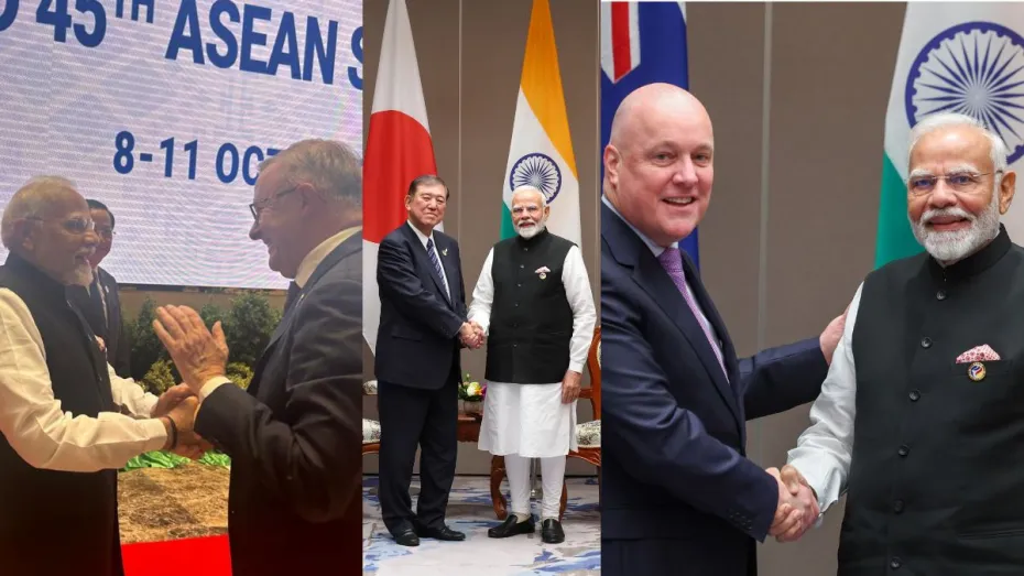 विएंतियाने (लाओस): प्रधानमंत्री नरेन्द्र मोदी ने बृहस्पतिवार को लाओस में ऑस्ट्रेलिया, जापान और न्यूजीलैंड के प्रधानमंत्री से विशेष मुलाकात की। इस दौरान वह कई अन्य देशों के राष्ट्राध्यक्षों से भी मिले और भारत के साथ द्विपक्षीय संबंधों को मजबूती देने पर चर्चा की। पीएम मोदी अपने जापानी समकक्ष शिगेरू इशिबा से यहां पहली बार मिले। अभी पिछले हफ्ते ही इशिबा जापान के प्रधानमंत्री बने हैं। जापान के पीएम से मिलकर उन्होंने बुनियादी ढांचे, संपर्क और रक्षा सहित विभिन्न क्षेत्रों में सहयोग बढ़ाने के तरीकों पर चर्चा की।