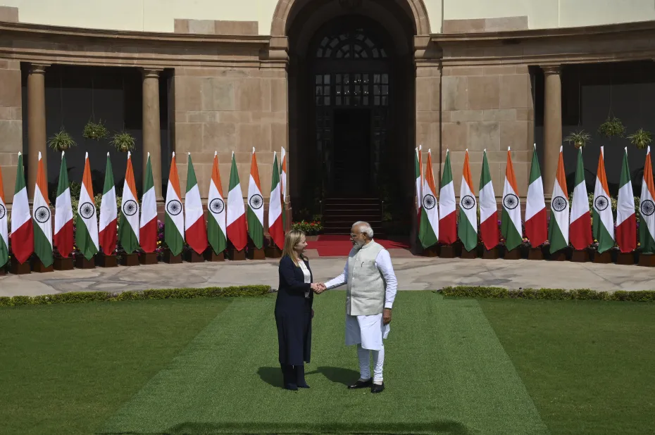 प्रधानमंत्री नरेन्द्र मोदी ने इटली की प्रधानमंत्री ज्यॉर्जिया मेलोनी के साथ व्यापक वार्ता के बाद बृहस्पतिवार को घोषणा की कि भारत और इटली ने अपने द्विपक्षीय संबंधों को रणनीतिक साझेदारी तक ले जाने का फैसला किया है। पिछले साल प्रधानमंत्री चुने जाने के बाद अपनी पहली दो दिवसीय राजकीय यात्रा पर भारत पहुंची जार्जिया मेलोनी ने यह भी घोषणा की है कि इटली हिंद-प्रशांत महासागर पहल में शामिल हो रहा है, क्योंकि दोनों देश द्विपक्षीय संबंधों की 75वीं वर्षगांठ मना रहे हैं। इटली की प्रधानमंत्री के साथ व्यापक बातचीत के बाद मीडिया को संबोधित करते हुए मोदी ने कहा कि भारत में सह-उत्पादन और सह-विकास के क्षेत्र में नए अवसर खुल रहे हैं, जो दोनों देशों के लिए फायदेमंद हो सकते हैं। मोदी ने इतालवी रक्षा कंपनियों को ‘‘मेक इन इंडिया’’ पहल में सक्रिय रूप से भाग लेने के लिए आमंत्रित भी किया।