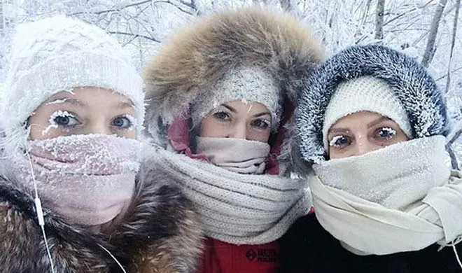 अमेरिका, दक्षिण अफ्रीका समेत दुनिया के कई देशों में लगातार ठंड का कहर बढ़ता ही जा रहा है। लोग बर्फबारी और ठंड के आगे बेबस हैं और अब इस लिस्ट में रूस का नाम भी जुड़ गया है जहां माइनस 67 डिग्री के टेम्प्रेचर में ज़िंदगी जम गई है। रूस से सर्दी के सितम की कई हैरान करने वाली तस्वीरें सामने आई हैं उन्हीं में ये एक तस्वीर ऐसी है जिसे देखकर आप चौंक जाएंगे। इन चेहरों को देखकर आप सोच रहे होंगे कि शायद इन्हें मेकअप से सज़ाया गया है। लेकिन असल में ये कलाकारी है कुदरत की और सितम है सर्दी का जिसके आगे सब कुछ जम गया है। हालात बिल्कुल हिमयुग जैसे हैं। बाल जम चुके हैं। आंखें जम चुकी हैं, चेहरे बर्फ बन गए हैं, पलकें भी सफेद हो गई हैं। (डोकलाम में ड्रैगन की नई चाल, बनाया अपना आर्मी बेस )