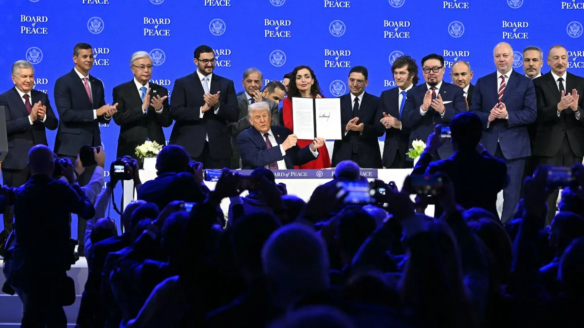 दावोसः अमेरिकी नेतृत्व पर उठ रहे सवालों के बीच दावोस में राष्ट्रपति ट्रंप ने गुरुवार को स्विट्जरलैंड के दावोस में विश्व आर्थिक मंच (World Economic Forum) के दौरान गाजा पर अपने प्रस्तावित 'बोर्ड ऑफ पीस' के पहले चार्टर का औपचारिक उद्घाटन और हस्ताक्षर समारोह किया। यह एक अंतरराष्ट्रीय निकाय है जो वैश्विक संघर्षों को सुलझाने के लिए बनाया गया है, हालांकि इसकी शुरुआत इजरायल-हमास युद्ध के बाद गाजा के पुनर्निर्माण और शासन की निगरानी से हुई थी। अब इसका दायरा बहुत व्यापक हो गया है। इसकी स्थायी सदस्यता के लिए 1 अरब डॉलर का मूल्य टैग लगाया गया है। पाकिस्तान समेत कई देशों ने ट्रंप के साथ इस पर हस्ताक्षर भी कर दिया है। जबकि चीन जैसे देशों ने फिलहाल इससे दूरी बना ली है।