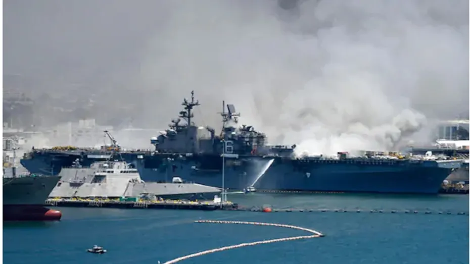 उन्होंने कहा कि पोत पर कोई गोलाबारूद मौजूद नहीं है, लेकिन उसमें करीब 37 लाख लीटर ईंधन है और आग से बहुत नीचे है। सोबेक ने बताया कि सेन डिएगो नौसन्य अड्डे पर लंगर डाले पोत में जब विस्फोट हुआ और आग की लपटे निकलनी शुरू हुई, उस समय उस पर 160 नौसैनिक और अधिकारी सवार थे। उन्होंने बताया कि काला धुआं करीब 840 की ऊंचाई तक उठता देखा गया।