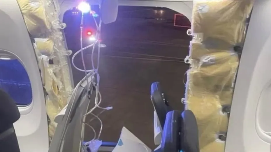 जापान एयरलाइंस के विमान हादसे के बाद एक और बड़ा विमान हादसा होते-होते बचा है। यात्रियों में उस वक्त हड़कंप मच गया, जब अलास्का एयरलाइंस के उड़ते बोइंग 737 विमान की खिड़की अचानक उखड़कर नीचे गिर गई। इसके बाद अचानक विमान के आक्सीजन मास्क धड़ाधड़ गिरने लगे नीचे। इससे विमान के सभी यात्रियों में हड़कंप मच गया। कई यात्री आक्सीजन मास्क लगाते दिख रहे हैं। आनन-फानन में पायलट ने विमान की आपातकालीन लैंडिंग कराई। इसके बाद सभी यात्रियों को फटाफटा नीचे उतारा गया। इससे विमान में सवार क्रू मेंबरों समेत सभी 180 यात्रियों की जान बच गई।