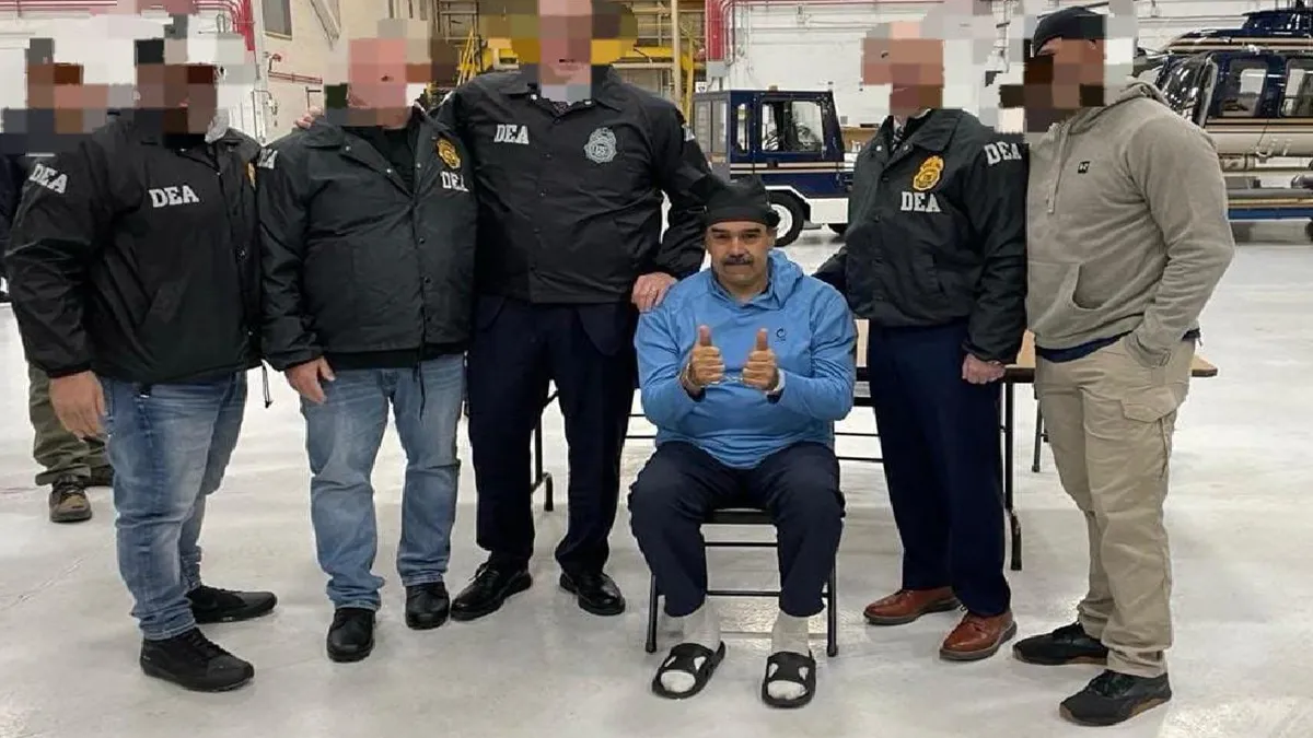 वेनेजुएला के अपदस्थ राष्ट्रपति निकोलस मादुरो को न्यूयॉर्क में ड्रग एनफोर्समेंट एडमिनिस्ट्रेशन (DEA) के सेल में लाया गया।
