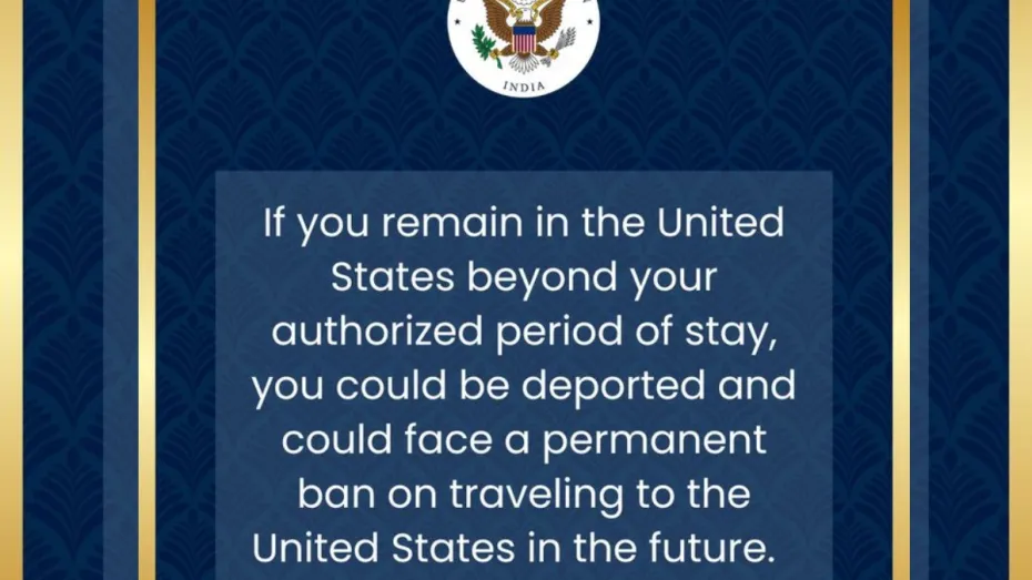 दूतावास ने एक्स पर लिखे संदेश में कहा है, “यदि आप अपनी अधिकृत अवधि से अधिक समय तक संयुक्त राज्य अमेरिका में रहते हैं, तो आपको निर्वासित किया जा सकता है तथा भविष्य में संयुक्त राज्य अमेरिका की यात्रा पर स्थायी प्रतिबंध लगाया जा सकता है।”