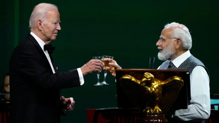 वाशिंगटन डीसी: भारतीय प्रधानमंत्री के सम्मान में अमेरिकी समयानुसार गुरुवार शाम को स्टेट डिनर का आयोजन किया गया। इस डिनर को अमेरिकी राष्ट्रपति जो बाइडेन ने आयोजित किया था। इससे पहले उन्होंने पीएम मोदी के लिए एक प्राइवेट डिनर का भी आयोजन किय था। स्टेट डिनर के लिए दोनों देशों के कई गणमान्य लोगों को न्योता भेजा गया था और तमाम लोग इसमें शामिल हुए थे।