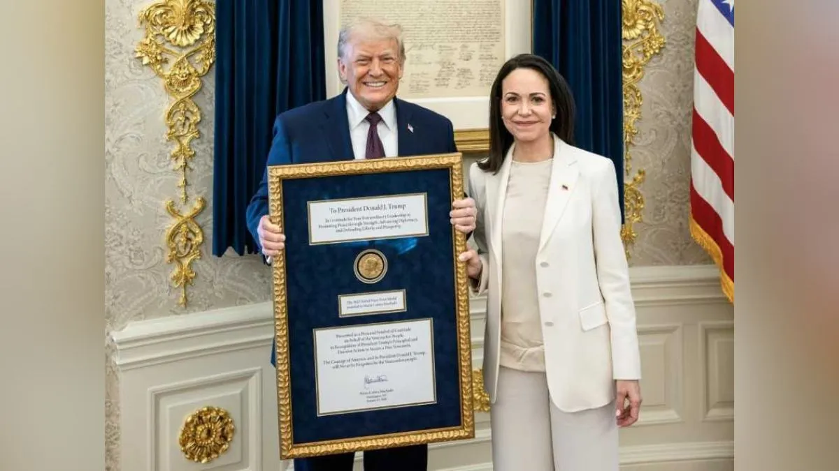 वेनेजुएला की विपक्षी नेता मचाडो ने कहा कि उन्होंने ट्रंप से मुलाकात के दौरान अपना नोबेल शांति पुरस्कार उन्हें सौंप दिया। मचाडो ने बताया कि उन्होंने गुरुवार को व्हाइट हाउस में राष्ट्रपति डोनाल्ड ट्रंप से मुलाकात के दौरान उन्हें अपना नोबेल शांति पुरस्कार पदक सौंप दिया। उन्होंने तत्कालीन राष्ट्रपति निकोलस मादुरो को सत्ता से हटाए जाने के बाद ट्रंप द्वारा बार-बार उनके देश की बागडोर संभालने की योग्यता पर सवाल उठाने के बावजूद, हमारी स्वतंत्रता के प्रति ट्रंप की अनूठी प्रतिबद्धता की सराहना की। मचाडो ने इस मुलाकात के बारे में और कोई जानकारी नहीं दी, और व्हाइट हाउस ने भी यह नहीं बताया कि ट्रंप ने पदक स्वीकार किया या नहीं।