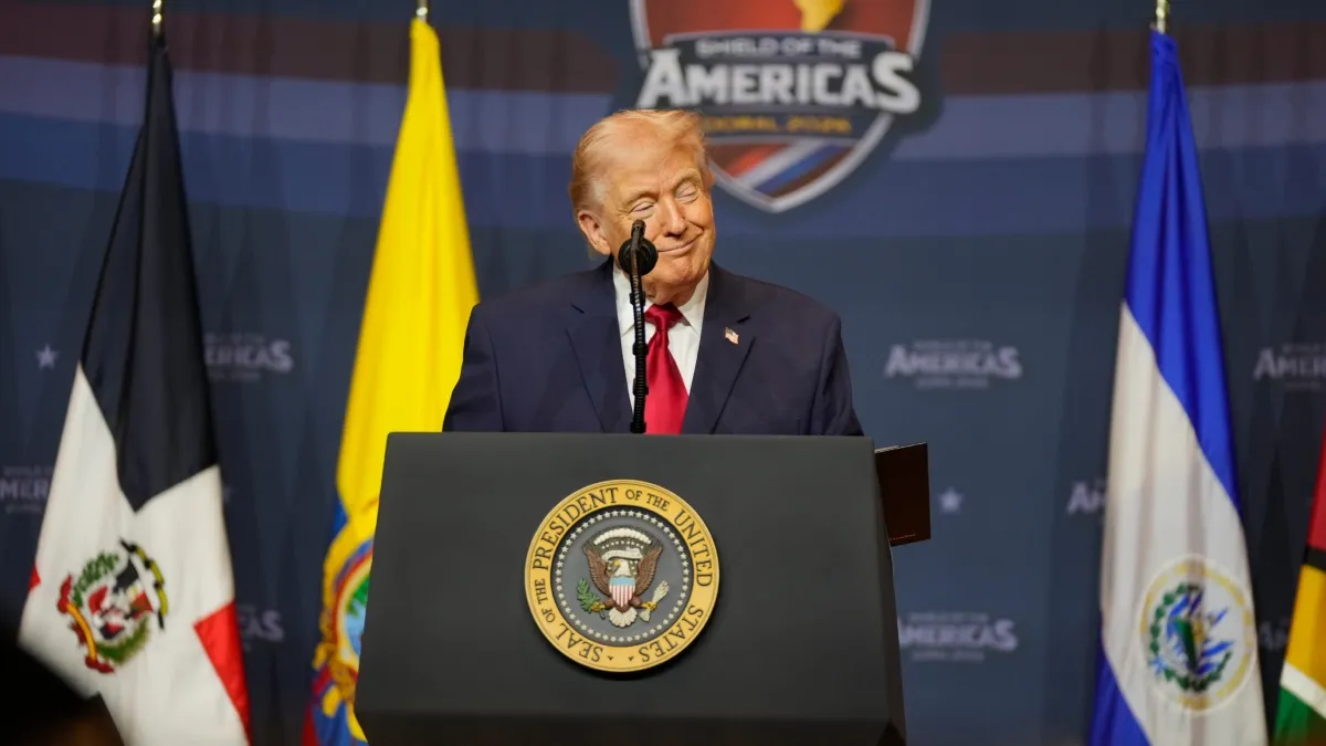 ईरान को लेकर ट्रंप ने कहा, "हमने उनके 44 नौसैनिक जहाजों को नष्ट कर दिया है। हमने उनकी वायुसेना के सभी विमानों को नष्ट कर दिया है। हमने उनकी अधिकांश मिसाइलों को नष्ट कर दिया है। अब वे ज्यादा मिसाइलें नहीं भेज पा रहे हैं। हमने उनके मिसाइल निर्माण क्षेत्रों पर भी भारी हमला किया है। उनकी ड्रोन क्षमता बहुत कम हो गई है। सेना लगभग न के बराबर है। हम सेना पर भी भारी हमला कर सकते हैं, लेकिन शायद हम करेंगे, शायद नहीं। हमने अभी तक इस बारे में कोई निर्णय नहीं लिया है।"