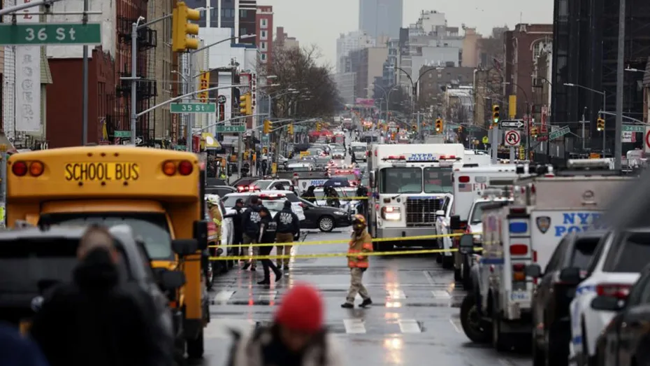 ‘द न्यूयॉर्क डेली न्यूज’ ने एक खबर में कहा कि 'एक गैस मास्क और आम तौर पर निर्माण क्षेत्र से जुड़े कर्मियों द्वारा पहनी जाने वाली नारंगी बनियान पहने एक बंदूकधारी ने भीड़-भाड़ वाली दक्षिण की ओर जाने वाली ‘आर ट्रेन’ में एक धुआं छोड़ने वाला बम फेंका और फिर यात्रियों पर गोलियां चला दीं। जैसे ही ट्रेन 36वें सेंट स्टेशन पर पहुंची और ट्रेन के दरवाजे खुले, घायल यात्री ट्रेन से बाहर आ गए “प्लेटफॉर्म पर गिर गए।' सोशल मीडिया पर अपलोड किए गए घटना के वीडियो फुटेज में दिखाया गया है कि ट्रेन से बाहर आने वाले यात्री घबराए हुए थे और स्टेशन पर धुएं में घिर गए थे।