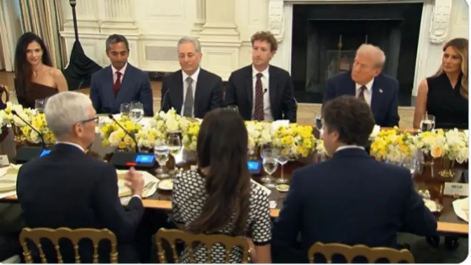 ट्रंप ने ह्वाइट हाउस में डिनर के दौरान टिम कुक की खिंचाई के साथ उनकी सराहना भी की। ट्रंप ने कहा, "टिम कुक, आपने Apple के साथ अविश्वसनीय काम किया है… बहुत कम लोग हैं जो ऐसा कर सकते हैं, बधाई हो।" इस दौरान टेक जगत की बड़ी हस्तियां जैसे मार्क जुकरबर्ग और सैम ऑल्टमैन मौजूद थे। इसके बाद टिम कुक ने तुरंत ट्रंप को धन्यवाद दिया और कहा कि आपके और फर्स्ट लेडी मेलानिया ट्रंप आयोजित "इस कार्यक्रम का हिस्सा बनना अविश्वसनीय है। इसके लिए आभार।"