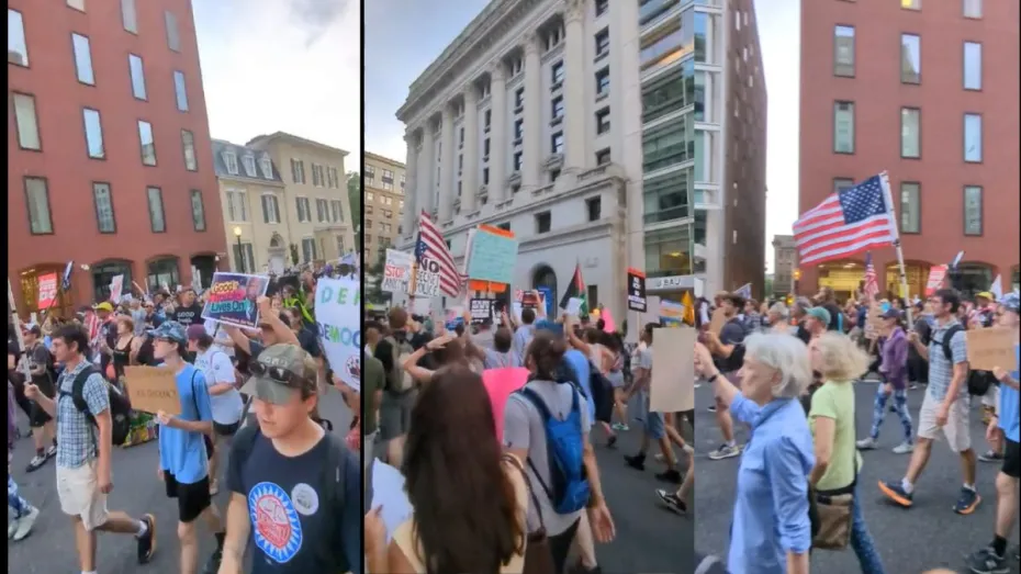 एक वीडियो में देखा गया कि ट्रंप और इमिग्रेशन (ICE) विरोधी प्रदर्शनकारियों ने न्यूयॉर्क सिटी के मैनहैटन स्थित फेडरल प्लाज़ा में ICE भवन के बाहर एक चौराहे पर बैठकर धरना दिया और रास्ता अवरुद्ध कर दिया।